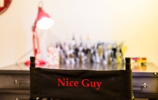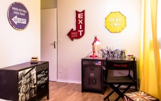 La petite note déco supplémentaire : le plafonnier style ‘Hollywood avec la chaise de metteur en scène spécialement personnalisée « Nice Guy » pour l’ado !