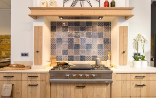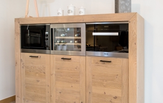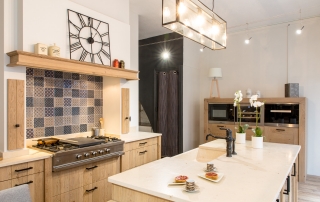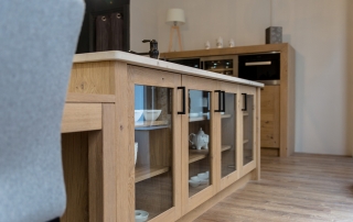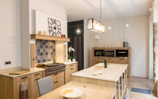 Cuisine de la gamme EPURE de La Cuisine Française en chêne massif blanchie huilée, dont les meubles sont à lames verticales aléatoires. Pour alléger l’ensemble, les demi armoires sont en modèle variation. La touche déco : un cadre de 1ocm de large les soulignent et sublime les appareilss MIELE et Liebherr, donnant une touche plus contemporaine à cet ensemble.